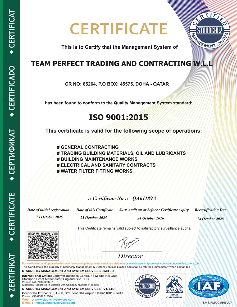 Team Perfect Trading and Contracting was established in Doha, Qatar in 2014 with the aim of forming lasting professional relationships based on respect and mutual trust with its customers, providing support for their objectives and goals.